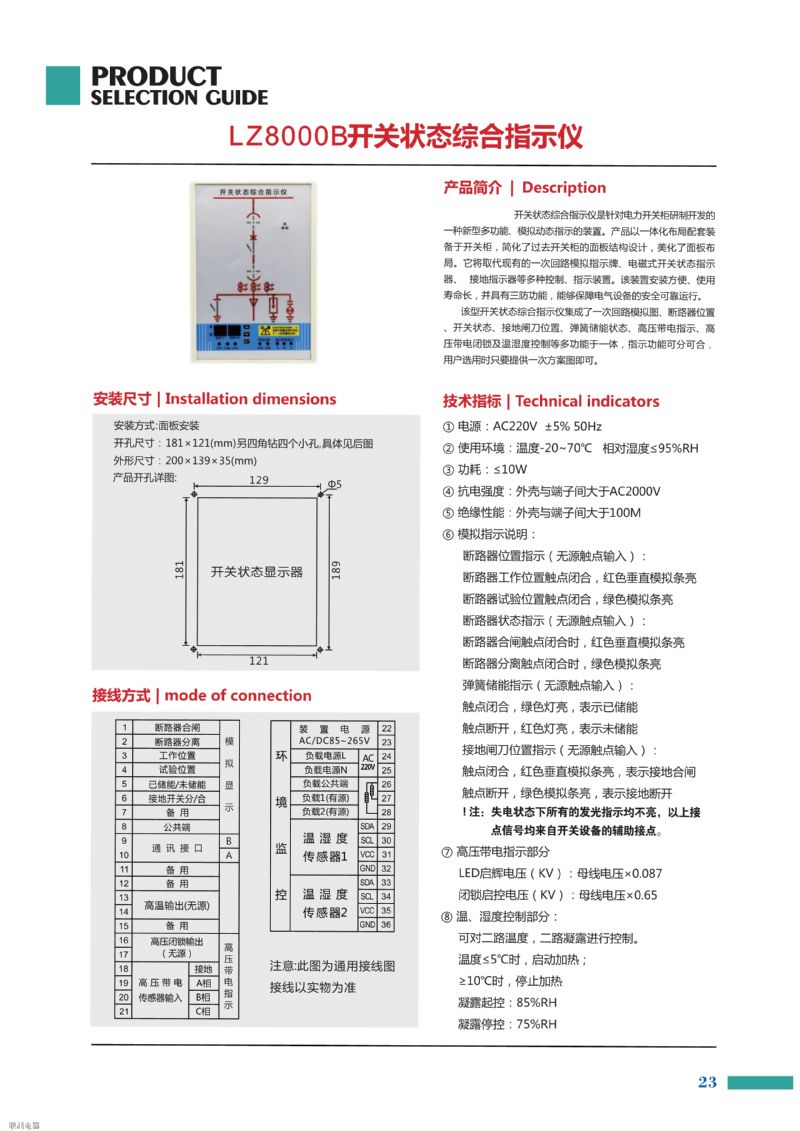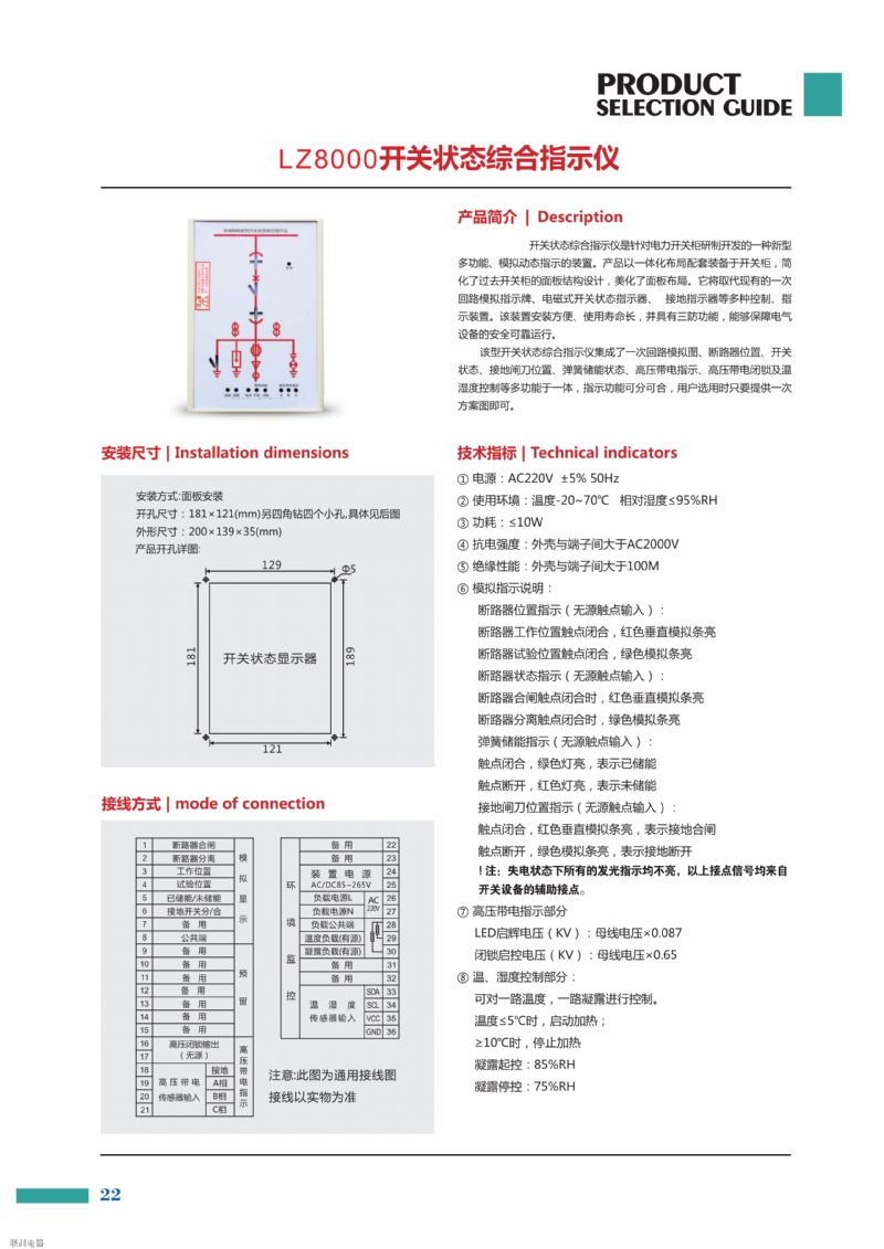 TL-6200開關狀態綜合指示儀產品集成了一次回路模擬圖、斷路器位置、開狀態、接地閘刀位置、彈簧儲能狀態、高壓帶電指示、高壓帶電磁閉鎖及溫、濕度控制等多功能于一體,用戶選用時只需提一次方案圖即可。本產品將取代現有的一次回路模擬指示牌、磁式開關狀態指示器、接地指示器等多種控制、指示裝置。如戶選配通訊功能,還可將所有開關狀態和溫濕度情況上傳