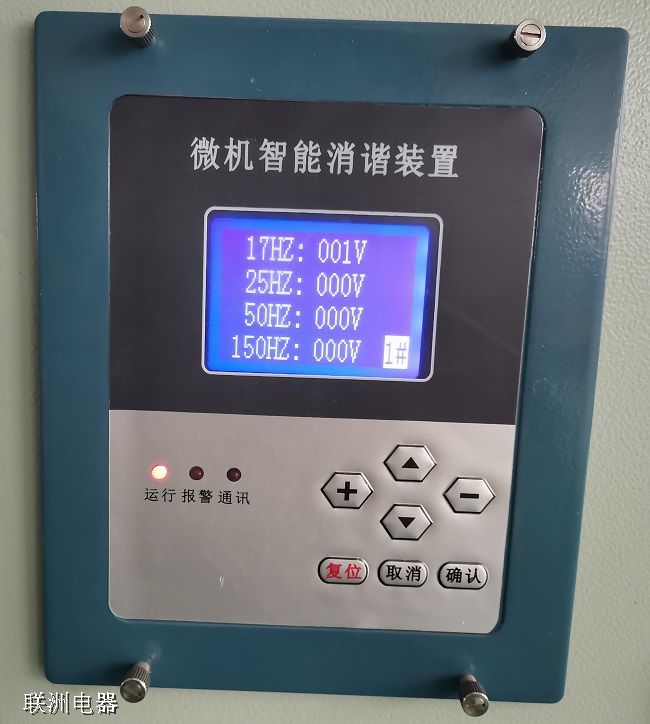 微機型諧振消除裝置可以實時監(jiān)測電壓互感器開口三角 處的電壓和頻率,當(dāng)發(fā)生鐵磁諧振時,裝置瞬時啟動無觸點開關(guān), 將開口三角繞組瞬間短接,產(chǎn)生強大阻尼,從而消除鐵磁諧振。若啟動諧振消除元件瞬間短接后,諧振仍未消除,則裝置再 次啟動諧振消除元件,出于對電壓互感器安全的考慮,裝置共可 啟動三次諧振消除元件。