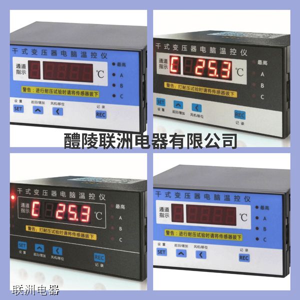 BWD-3K130干式變壓器溫度顯示控制器是為風冷干式電力變壓器可靠運行而設計的新一代多功能電腦溫度控制器。利用預埋在干式電力變壓器三相繞組線包中的三中Pt100鉑熱電阻來檢測干式電力變壓器線包的溫升,并根據溫升自動控制冷卻風機的啟停、超溫報警直至超高溫跳閘以保證千式電力變壓器的安全運行。由于采用目前先進的德國RISC單片計算機并結合先進的