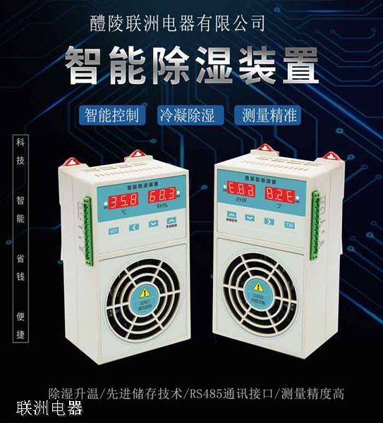 DS-CS800智能型除濕裝置是采用半導體制冷除濕方式, 主動將密閉空間的潮濕空氣在風扇的作用下吸入除濕風道, 空氣中的水汽經過半導體制冷機構后冷凝成水, 再通過導水管排出柜體, 可以達到很好的除濕效果。 通過減低空氣中含水量, 使相對濕度和濕度同時下降, 幾乎不提高溫度, 不產生溫差帶來的負面影響, 從根本上杜絕或減少了事故的發生, 也不會因高溫而加速柜內器件及柜體的老化。 智能型除濕裝置把被動防止凝露方式,改為主動引導凝露,有效的防止柜內設備老化、 絕緣強度降低、 二次端子擊穿、 材料霉變及鋼結構件銹蝕等安全隱患,保證電網安全運行 除濕器又稱為抽濕機、干燥機、除濕器,一般可分為民用除濕機和工業除濕機兩大類,屬于空調家庭中的一個部分。通常,常規除濕機由壓縮機、熱交換器、風扇、盛水器、機殼及控制器組成。技術指標