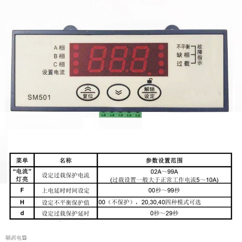 SM502/501數(shù)顯電流過載相序保護(hù)的說明書