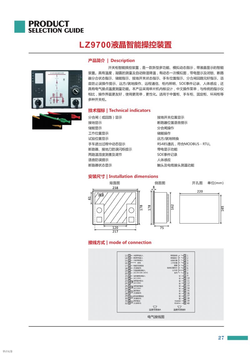 XKY-CK6800開關柜智能操控裝置產品功能強大,適用于3KV-35KV 戶內開關柜,手車柜、固定柜、中置柜、環網柜等多種開關柜。具有動態一次模擬圖、高壓帶電顯示、斷路器分合狀態指示、儲能指示、接地開關狀態指示、自動加熱除濕數據顯示及控制、小車位置指示、分合閘回路完好指示、人體感應及柜內照明、語音防誤提示功能,本裝置可取代現有的一次回路模擬圖、帶電顯示器、自動加熱除濕控制器、斷路器分合按鈕等獨立安裝的設備。具有RS485通訊接口,MODBUS通訊協議。使開關柜進一步智能化、數字化、網絡化,方便廣大用戶使用與操作。