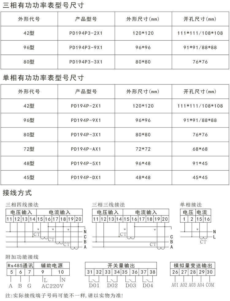 PD194P-9X1、PD194P-5X1三相有功功率表 單相有功功率表