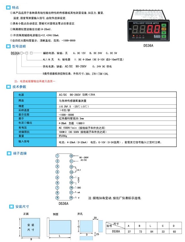DS36A-NA,DS36A-RB,DS36A-IA智能數(shù)顯表