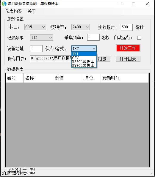 “串口數據采集”軟件單設備版本截圖如下: